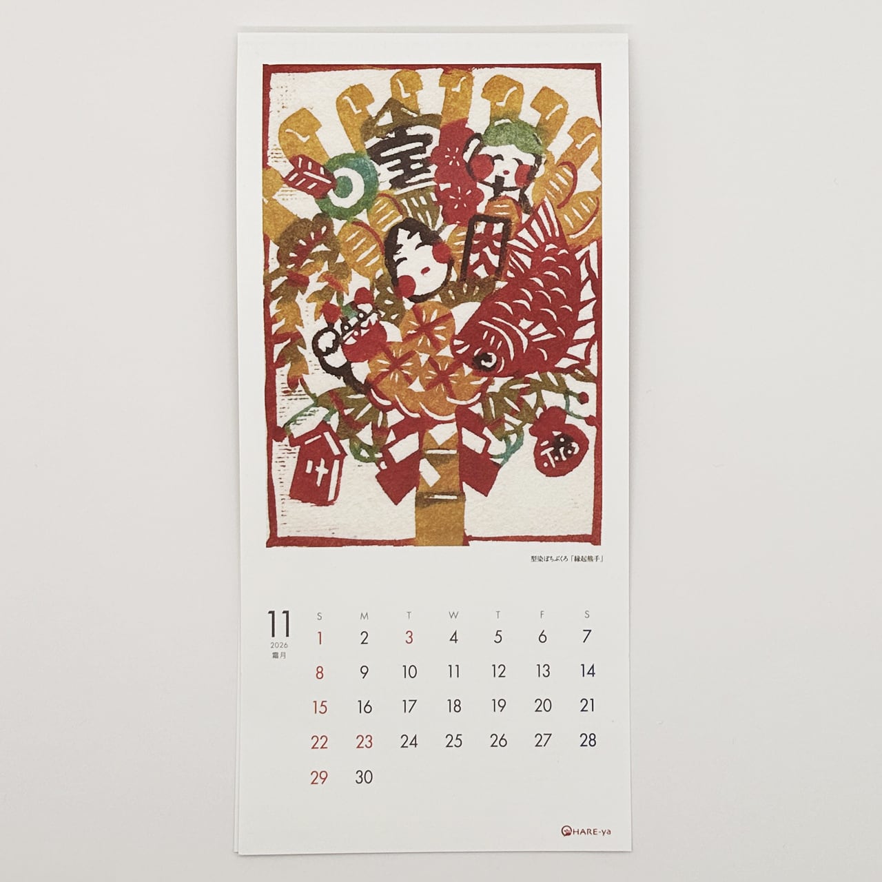 型染めぽちぶくろが2026年のカレンダーになりました。